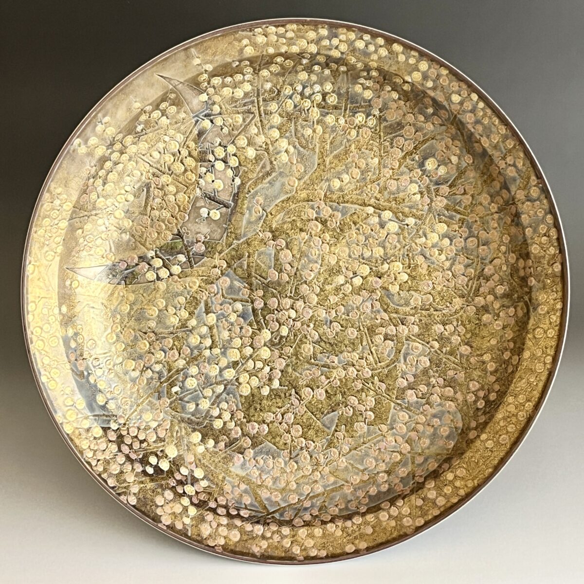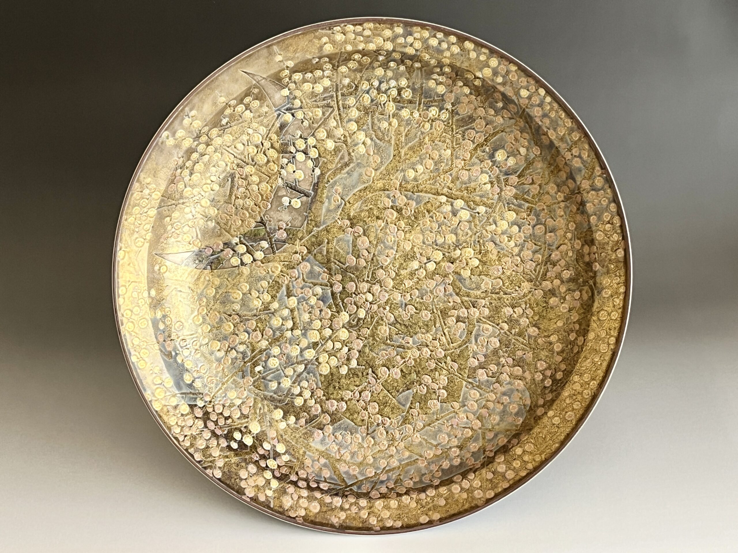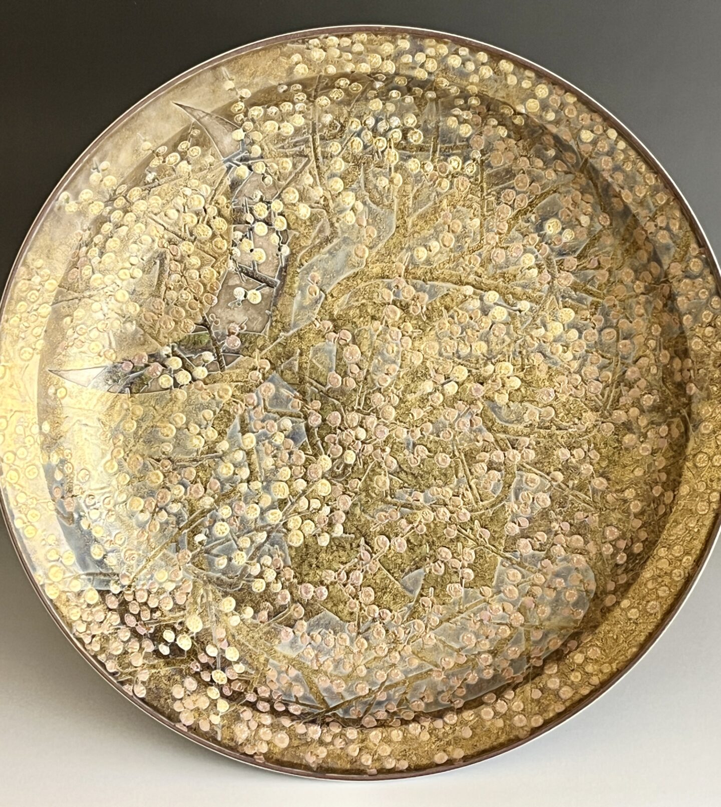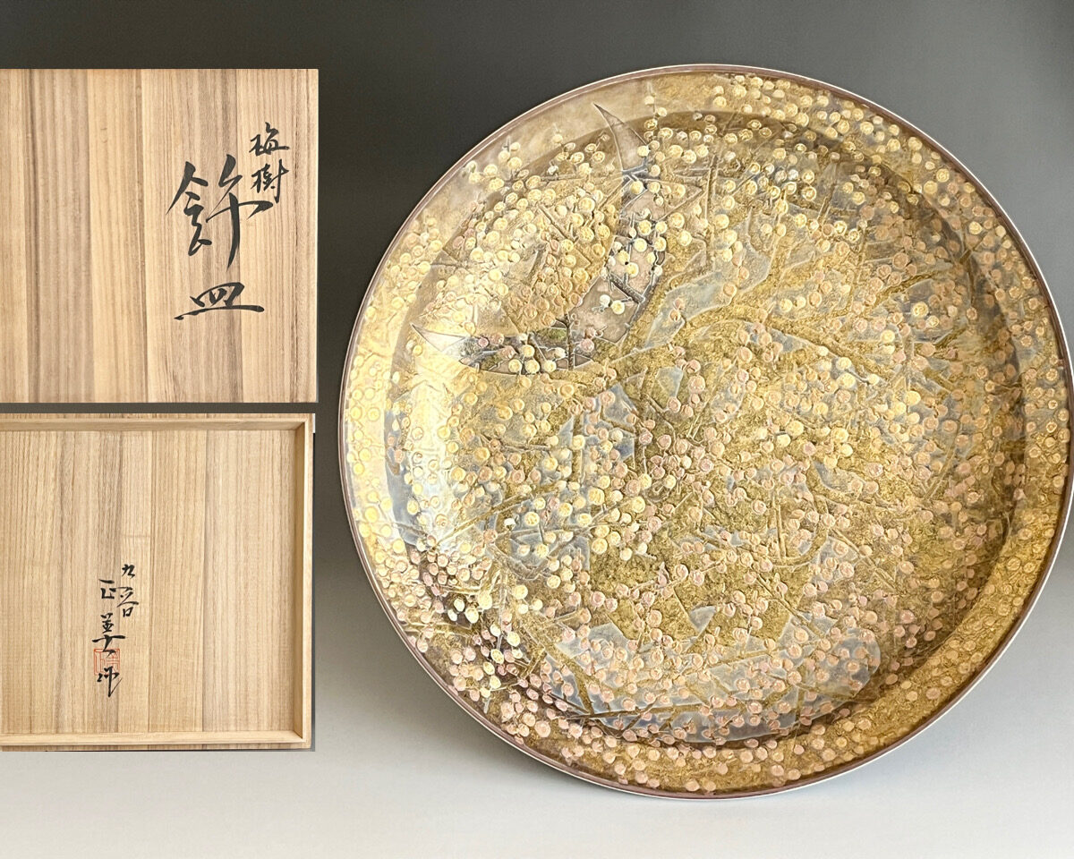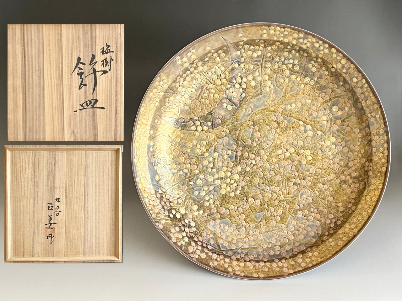 ★ 藤村正美 九谷焼 梅樹 飾り皿 胴径36.5㎝ 大皿