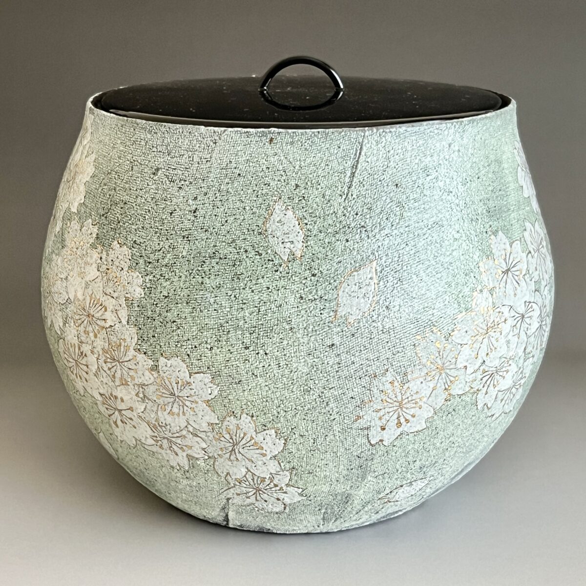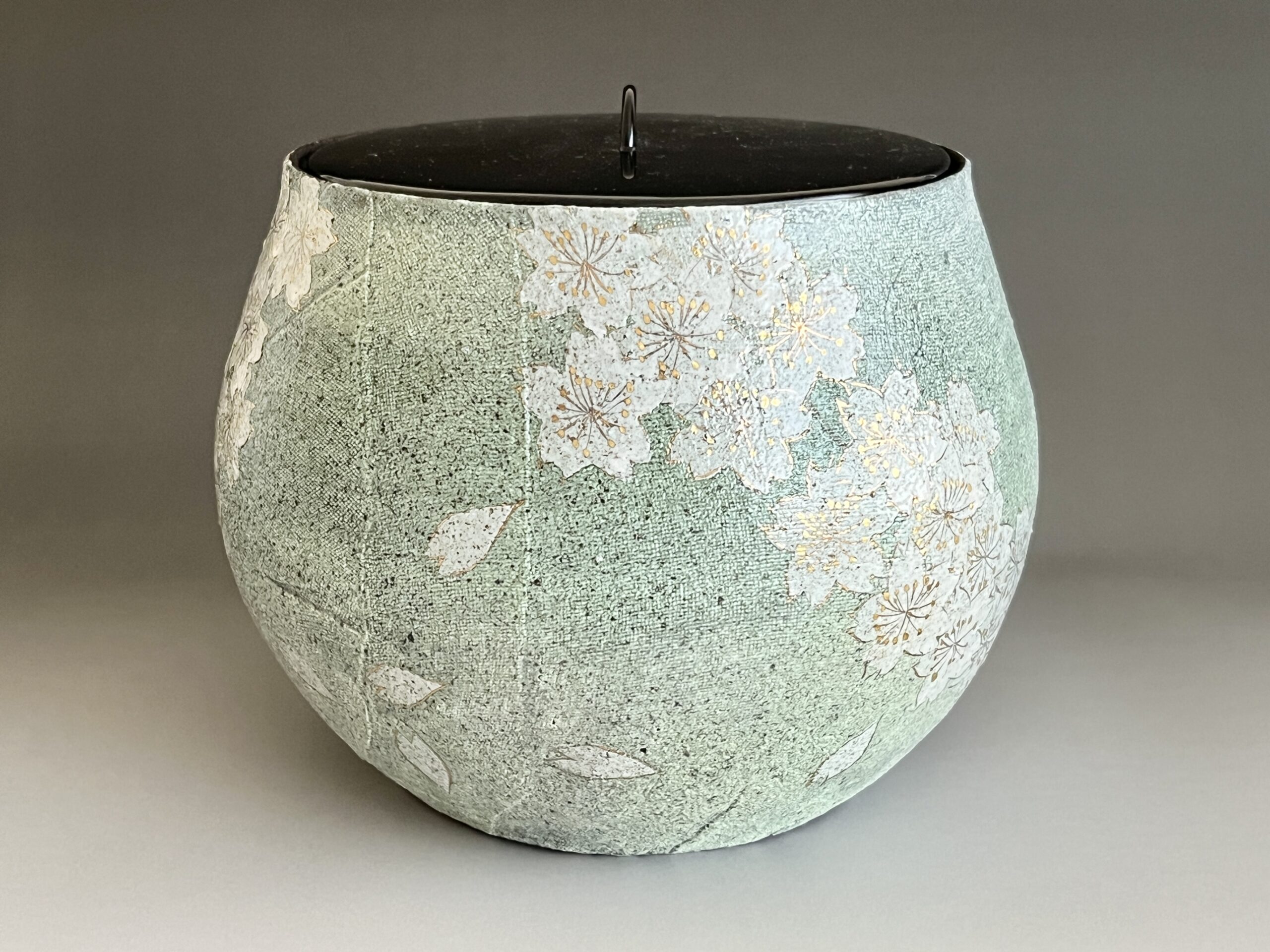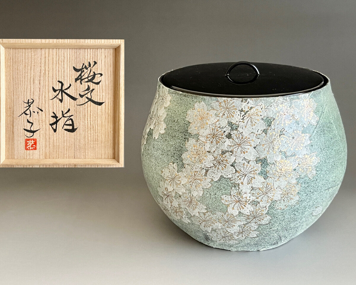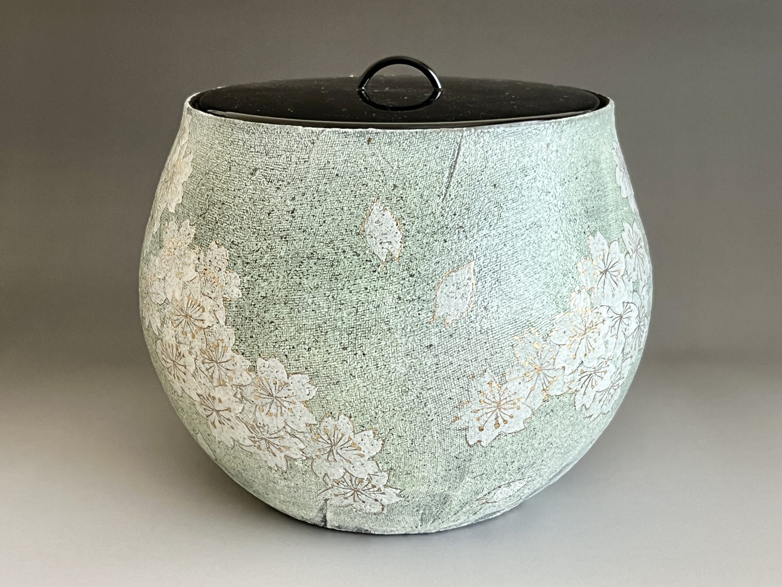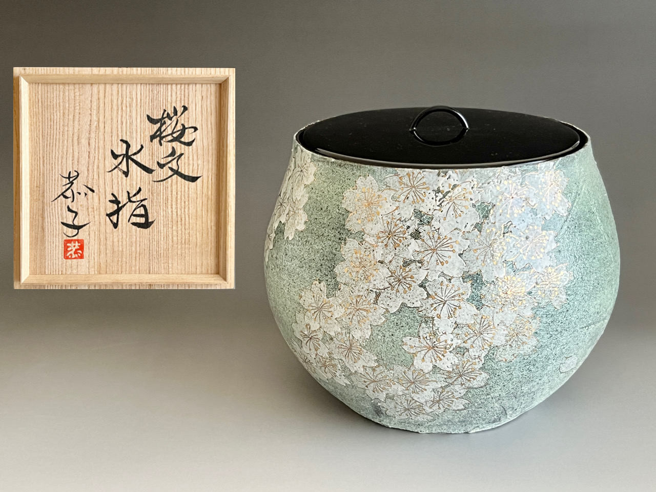 ★ 島田恭子 益子焼 桜文 水指 茶道具 布目色絵金彩