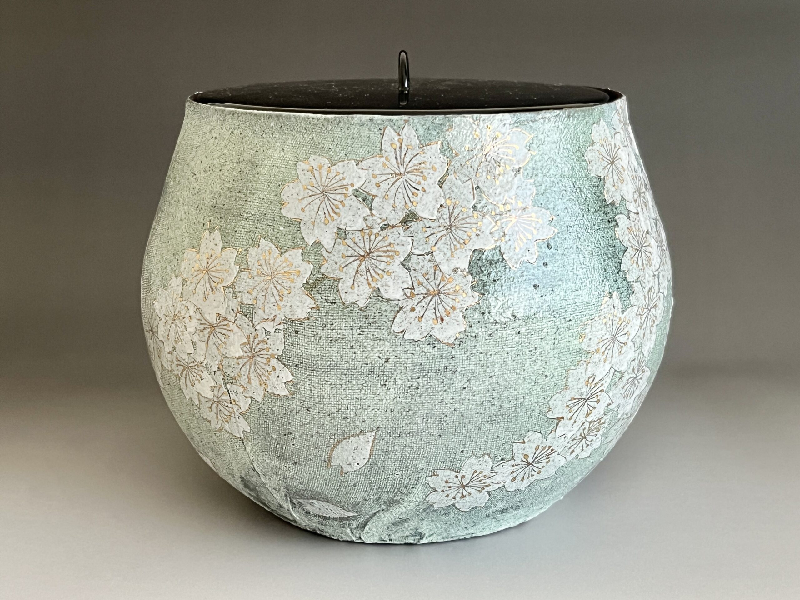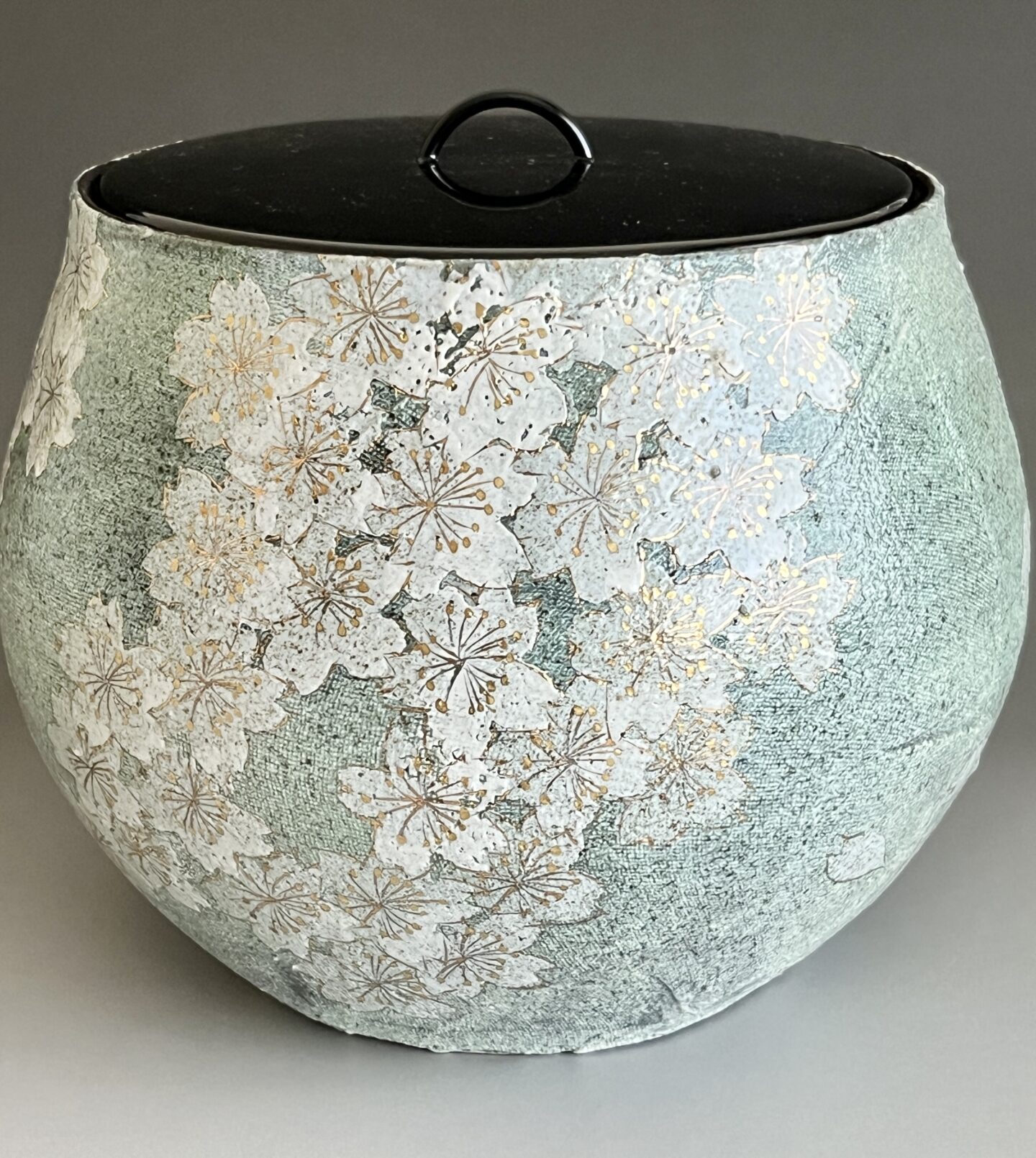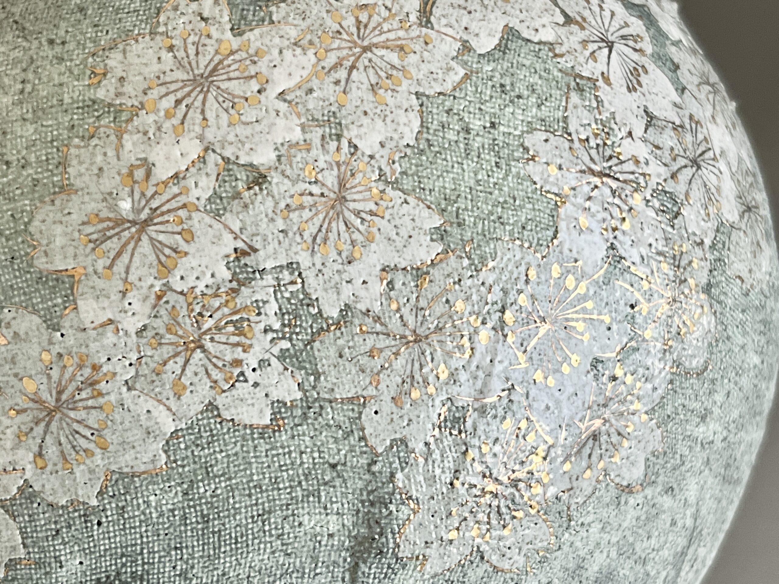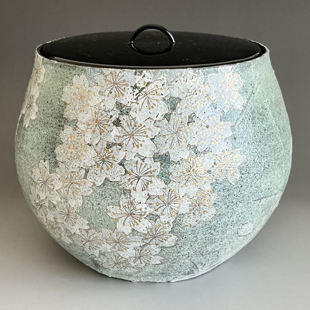 ★ 島田恭子 益子焼 桜文 水指 茶道具 布目色絵金彩