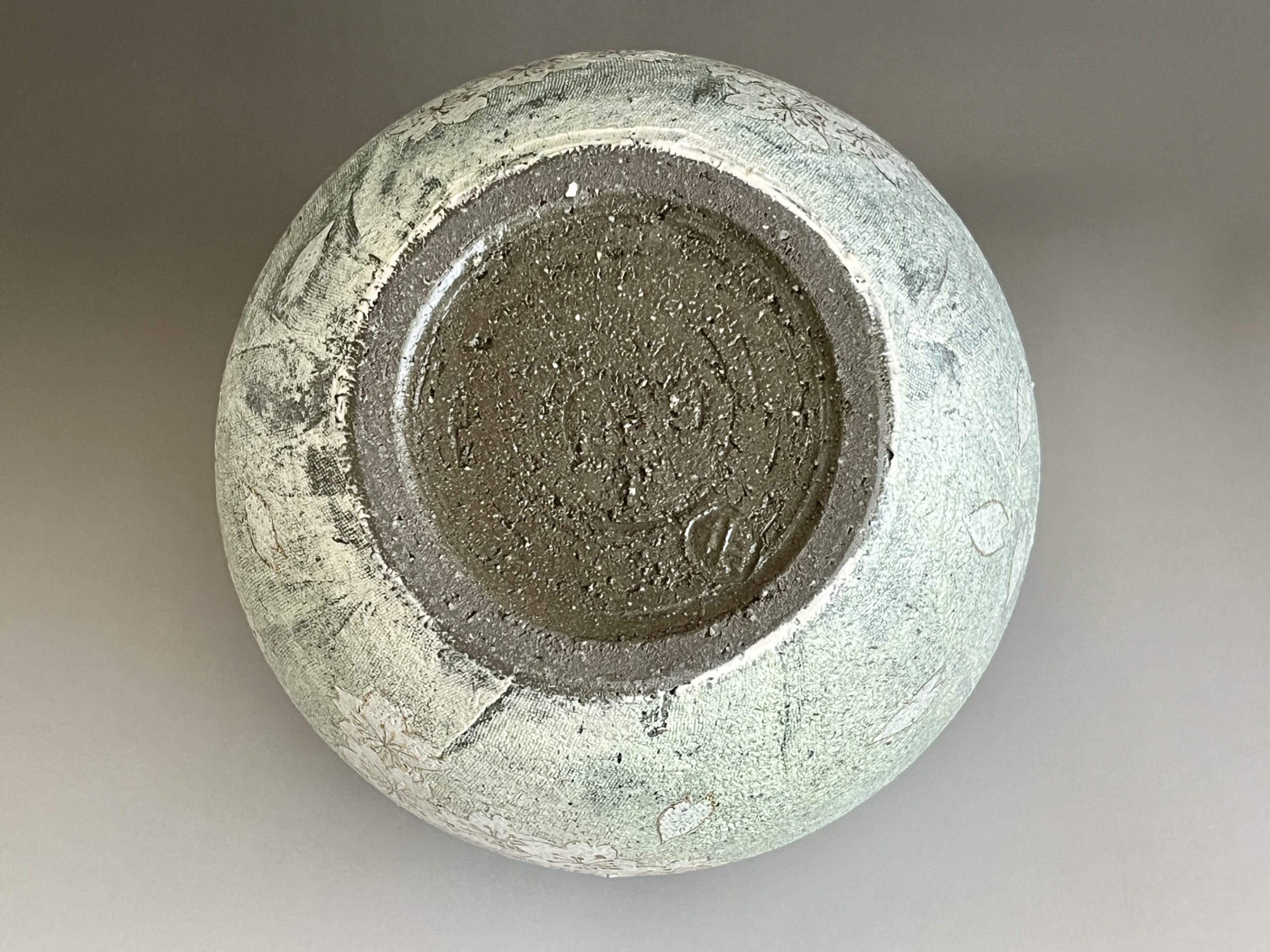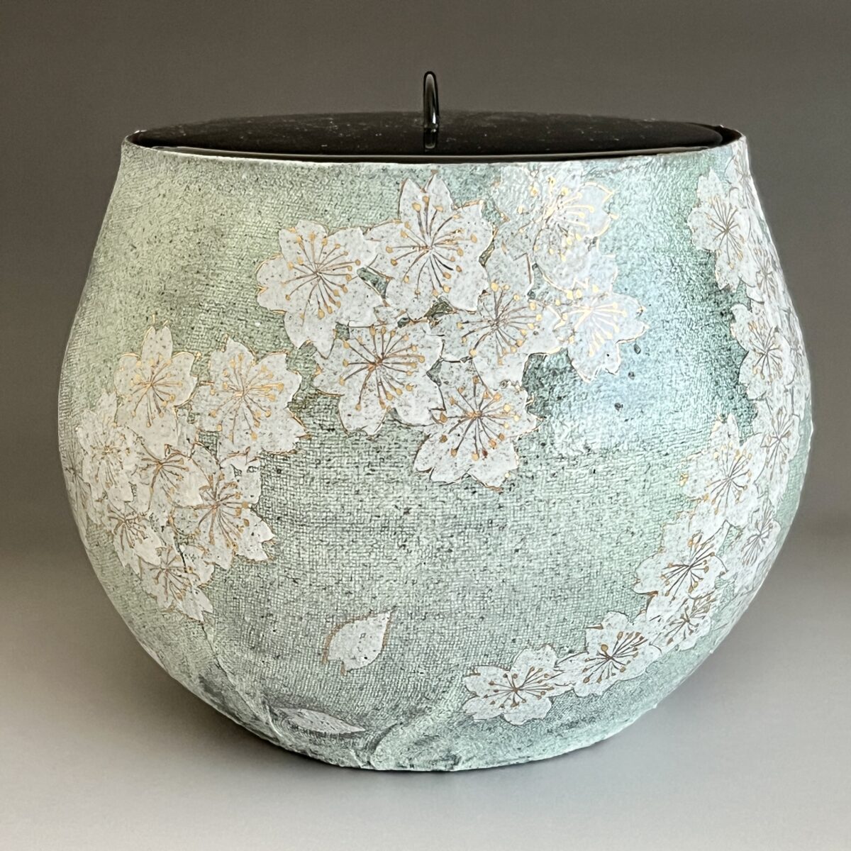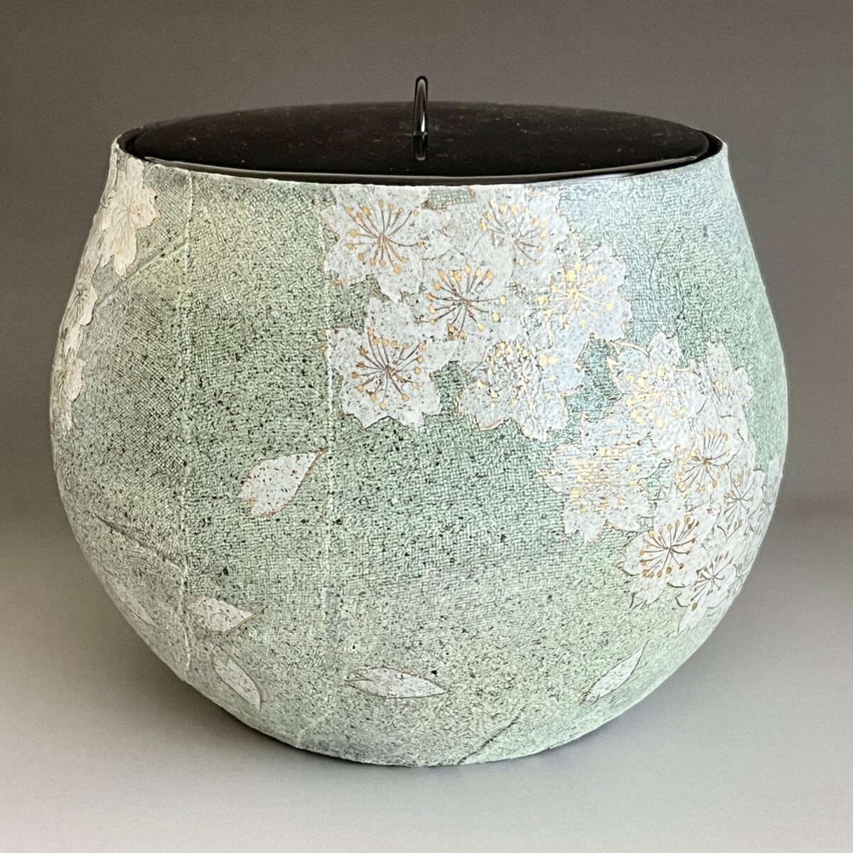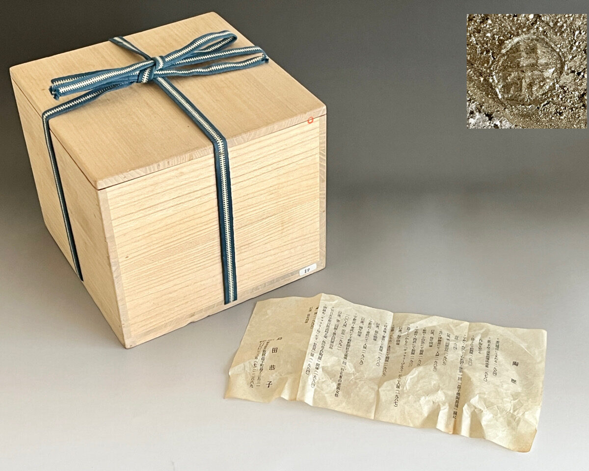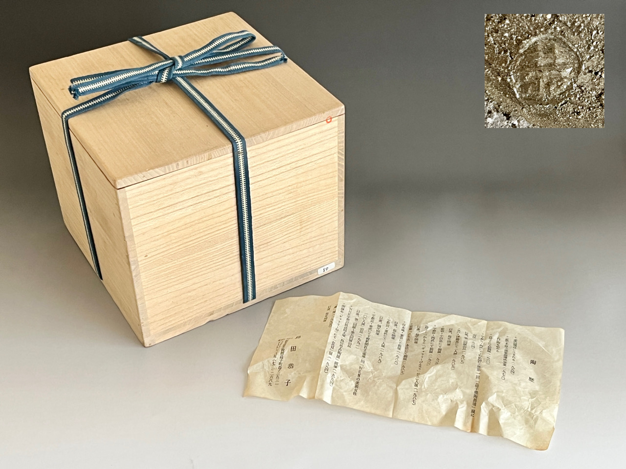 ★ 島田恭子 益子焼 桜文 水指 茶道具 布目色絵金彩