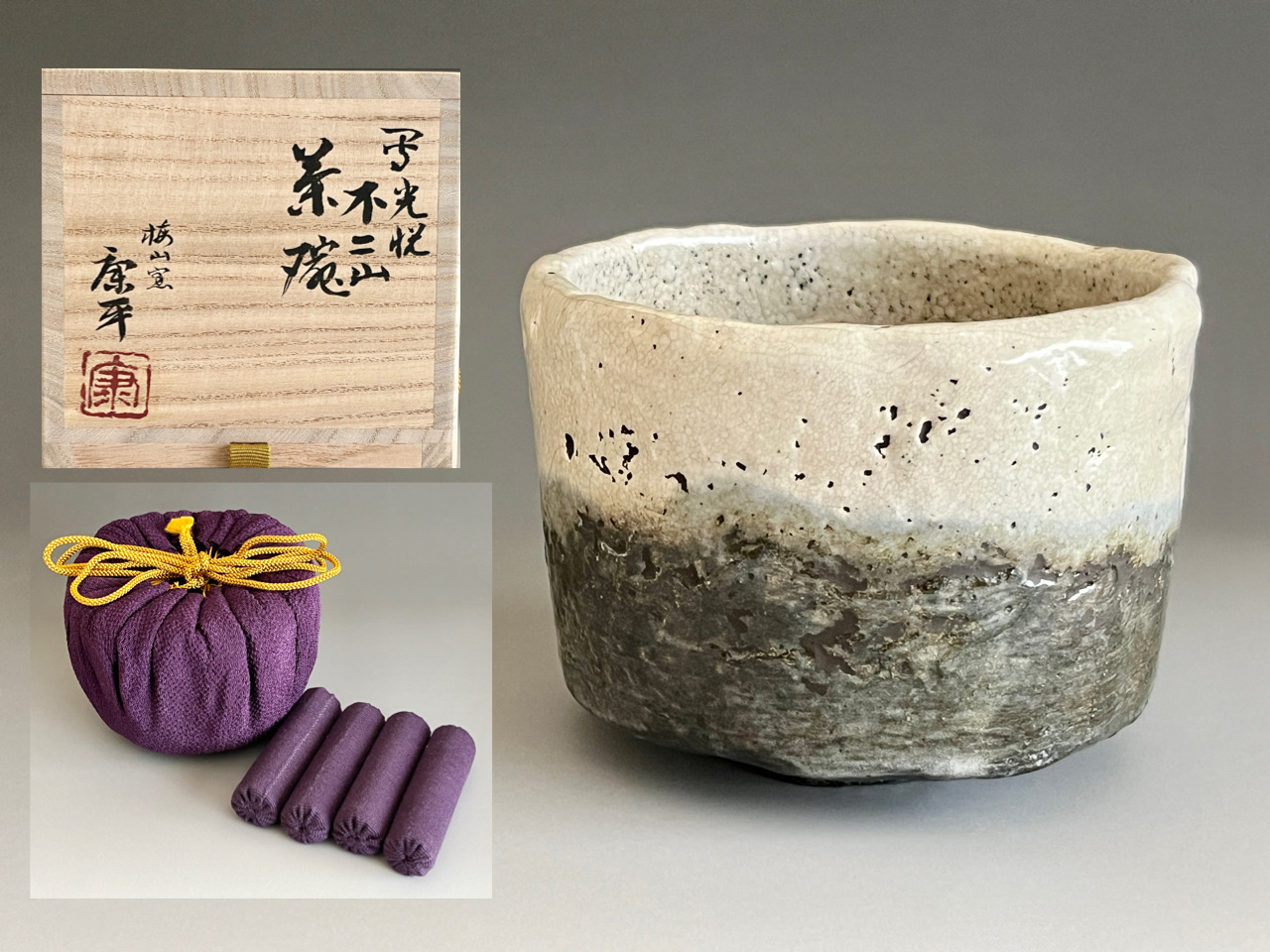 ★ 中村康平 (父 中村梅山)梅山窯 光悦写 不二山茶碗 富士山 茶道具